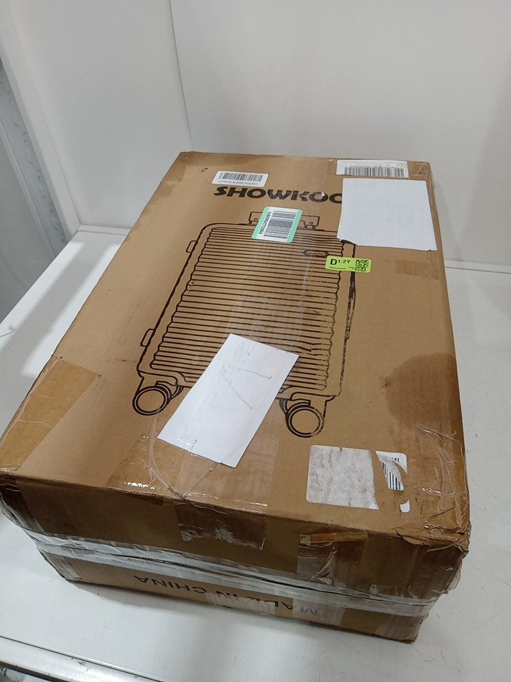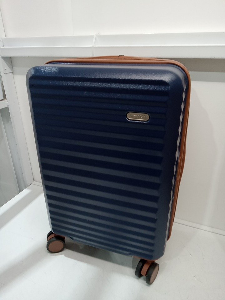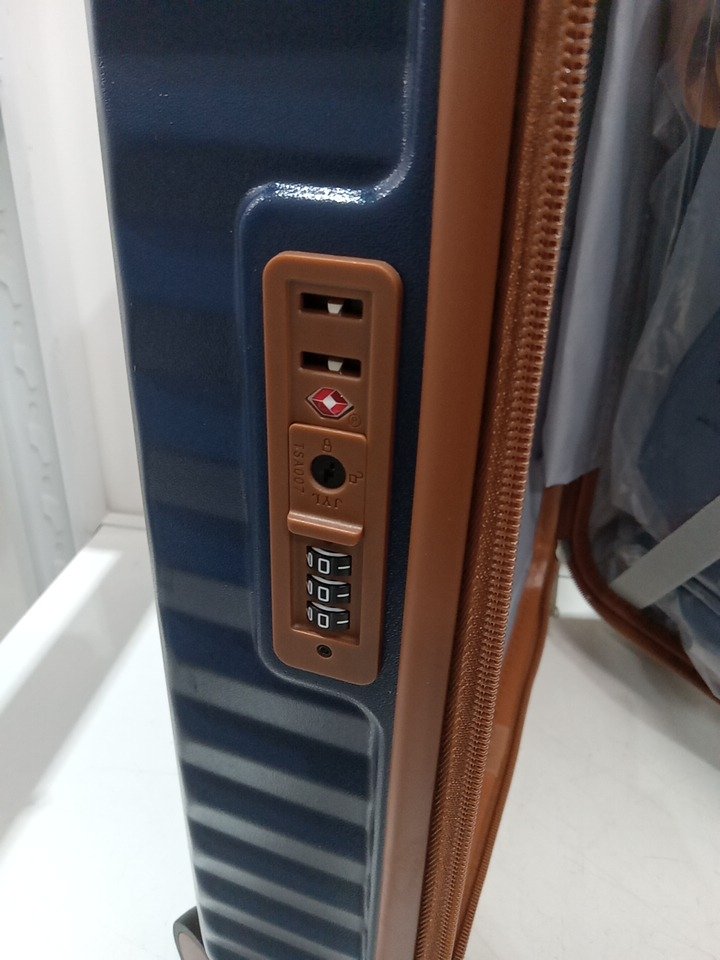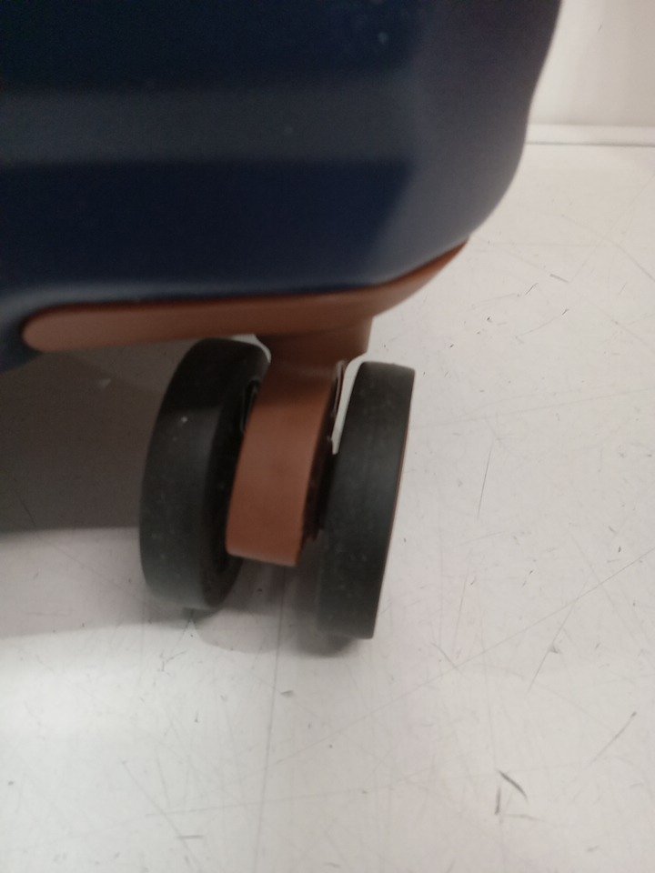 Some dirt on the wheels and pet hair on the suitcase from previous use. Code is set to 0-0-0.