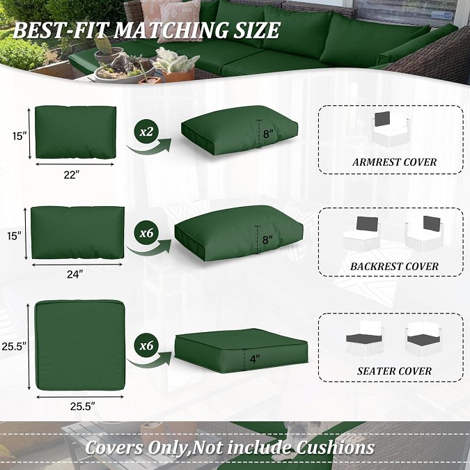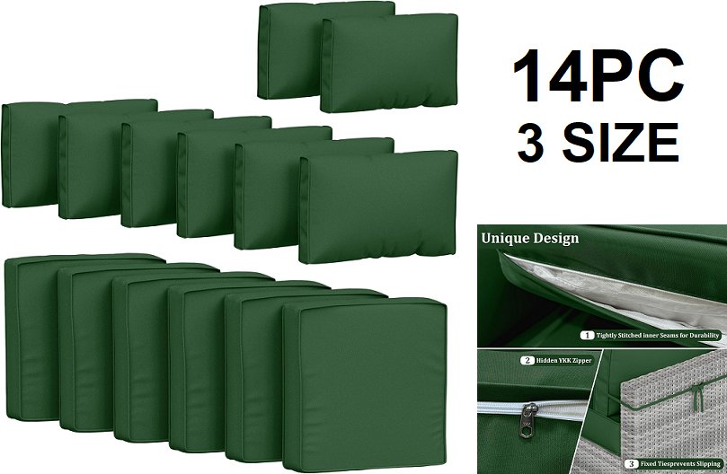 14PC Outdoor Seating Group Cushion Covers - 3 SIZES - EMERALD GREEN