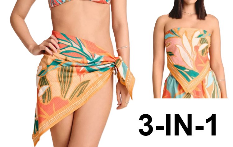 Women's Vitamin A 3-IN-1 Multiwear Sarong Scarf Cover Up One - size fits Most - Coral Print