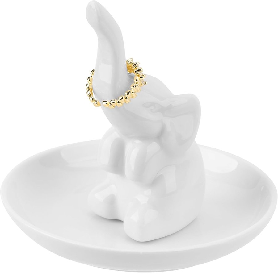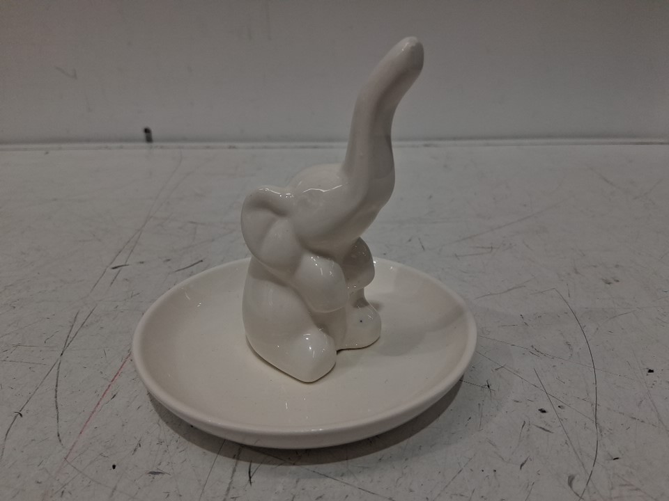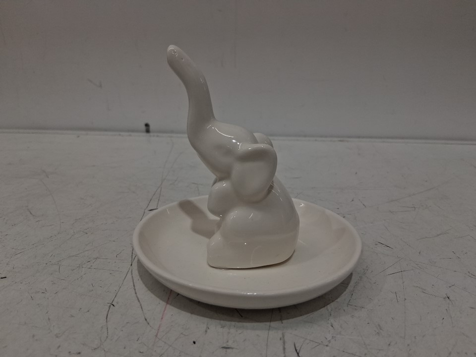 Pudding Cabin ceramic Elephant Ring Holder dish - White (MODEL: ‎LPL-0004-03)