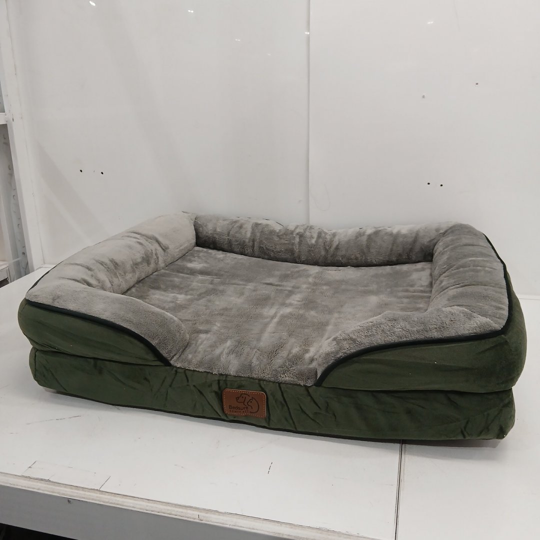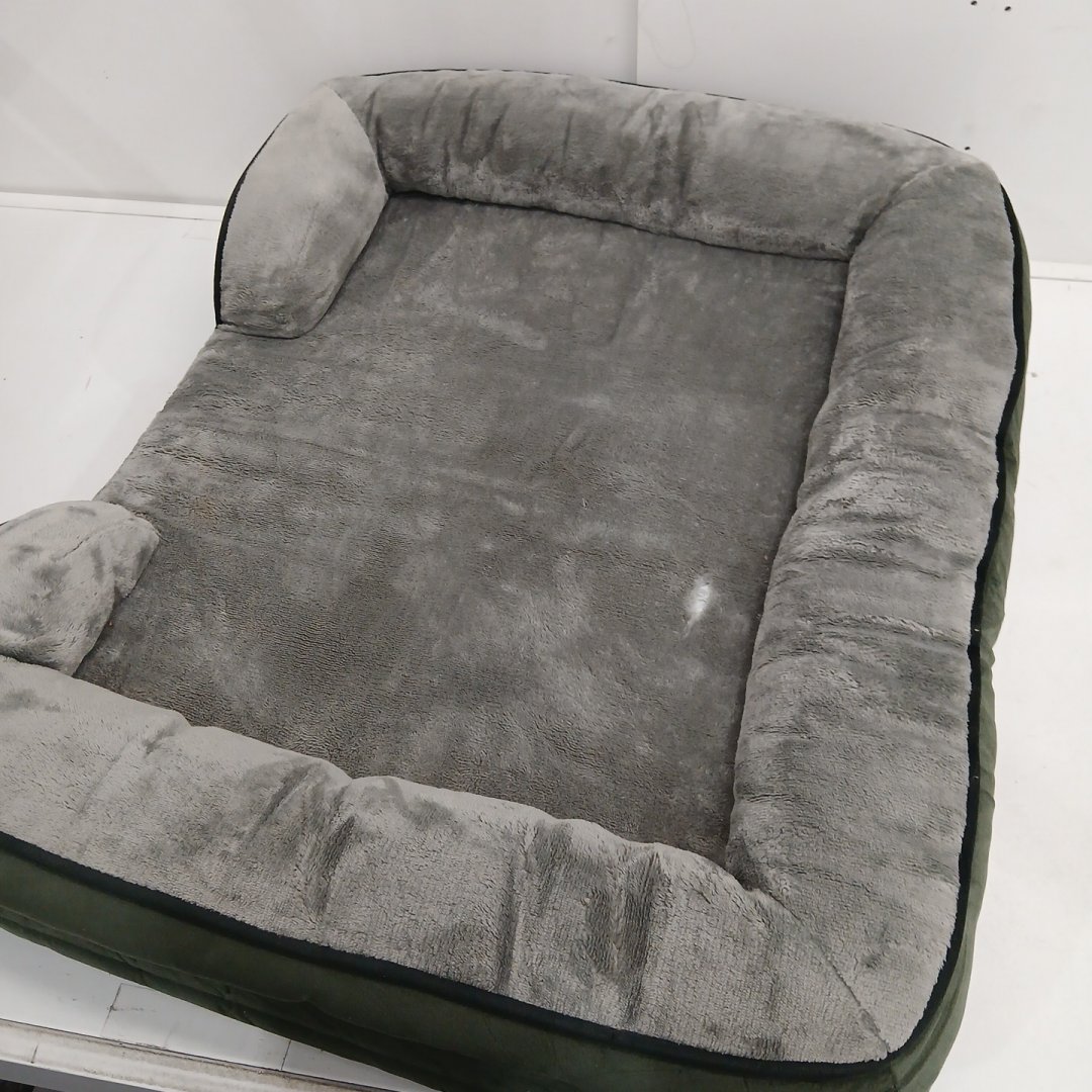 signs of pet fur present within item, as well as a "dig spot" where the dog pulled some fabric from scratching.