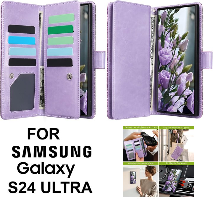 GLITTER Wallet Case WITH CARD SLOTS - Samsung Galaxy s24 ultra - Purple