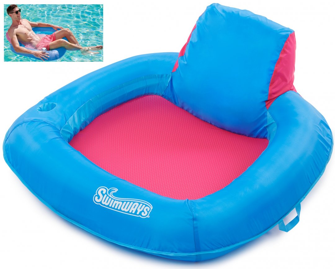 SwimWays Premium Spring Inflatable Floating SunSeat Pool Chair with cup holder - 250lbs cap - 33" x 38" x 15.5" - Blue/Pink (Model: 6069518)