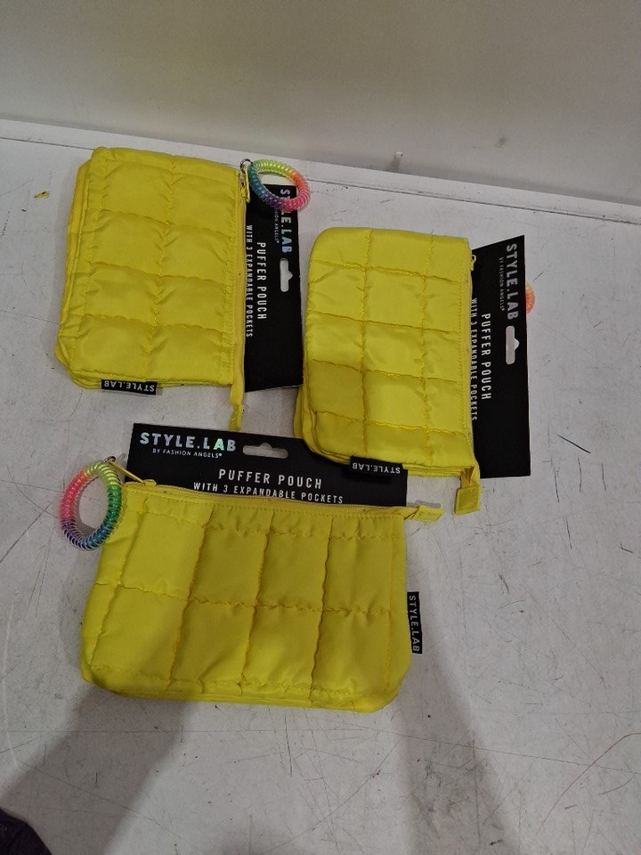 3 Style Lab Expandable Quilted Puffer Pouch & HAIR TIE - yellow