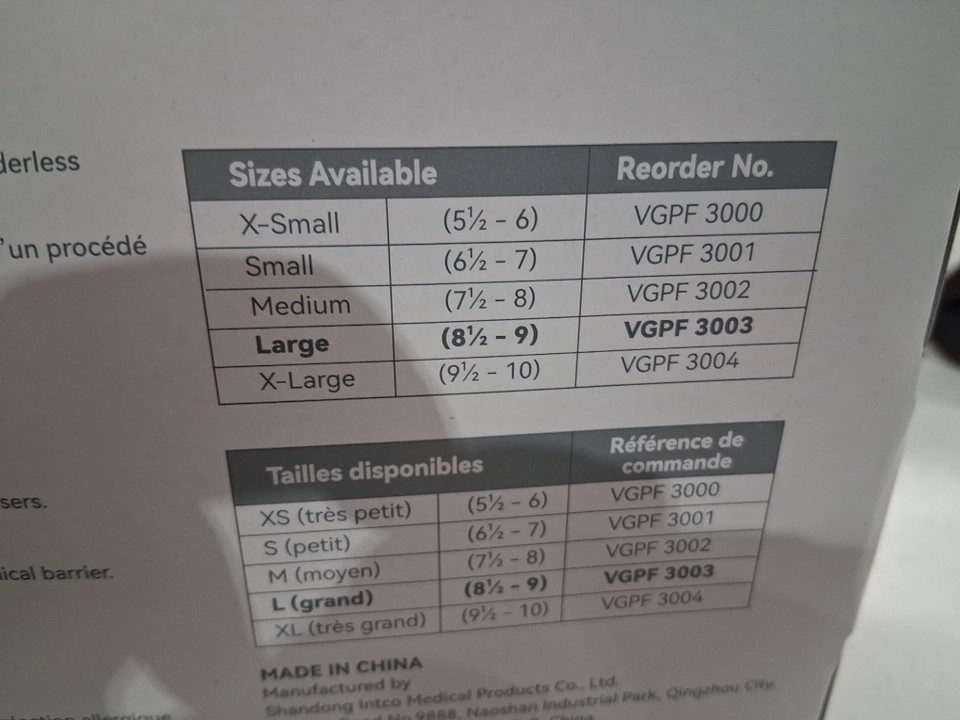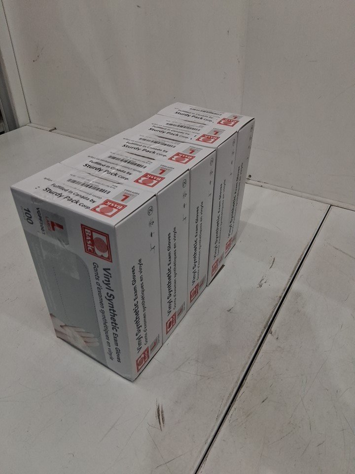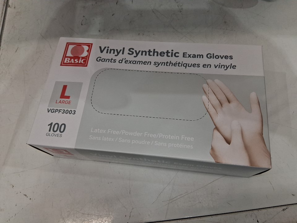 5(100PK) basic vinyl synthetic exam gloves, latex free/powder free -Large - (500 total) - (model: vgpf3003)