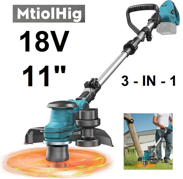 mtiolhig 3 in 1 cordless string trimmer - compatible with makita battery - 18v - 11" - blue/black