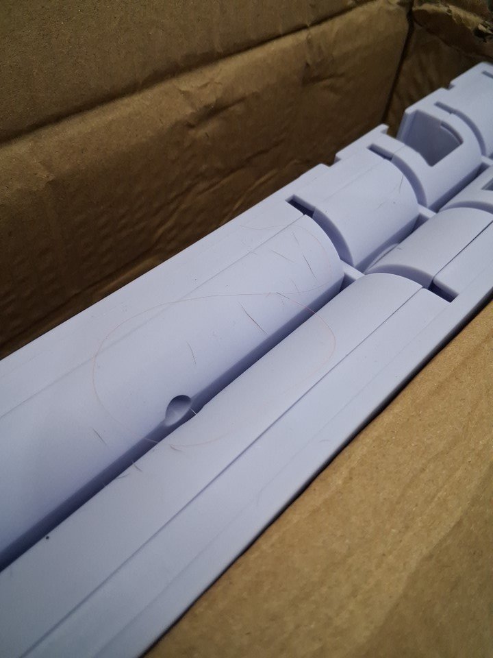 the removable foam pad appears to be indented as well as some hair on the product from previous use (see photos)