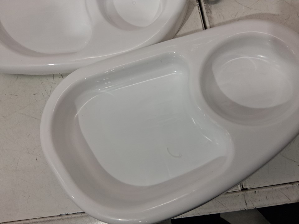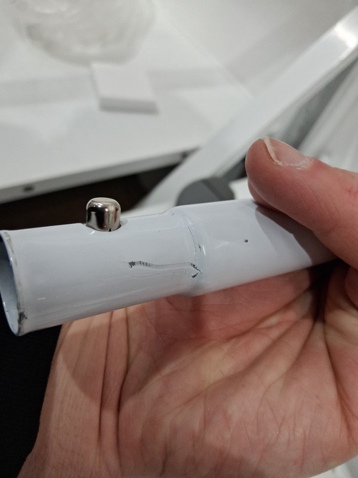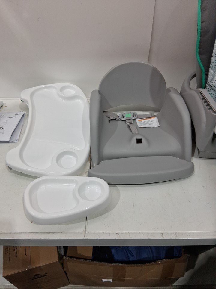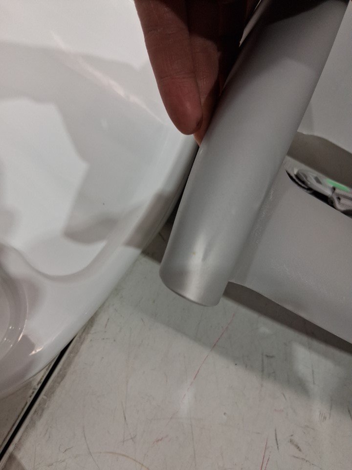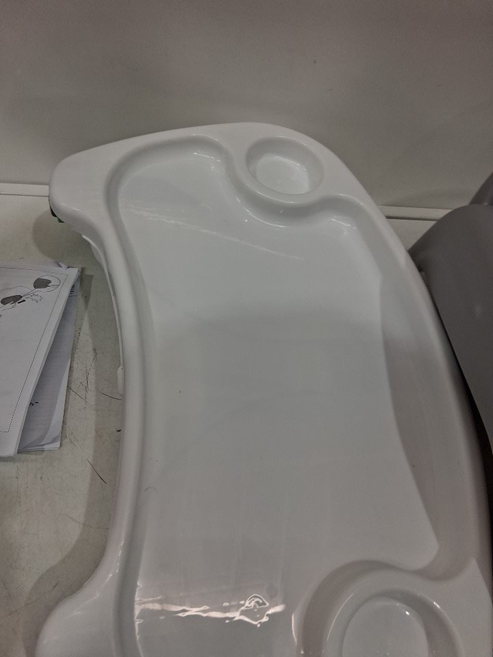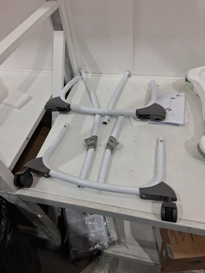 stains on the chair cover, some damage to the plastic (white marks on plastic) and scratching on the legs / frame of the item all indicating prior use