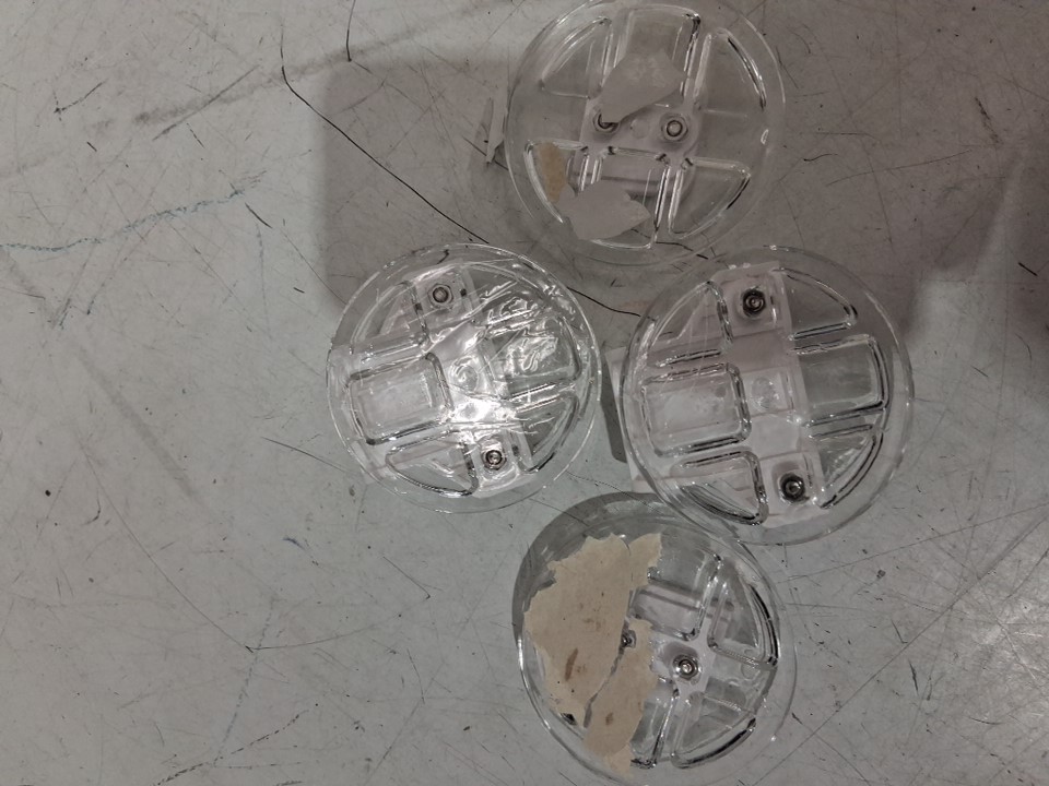 Signes of light use, some adhesive pads have been used with drywall stuck to them. See photos