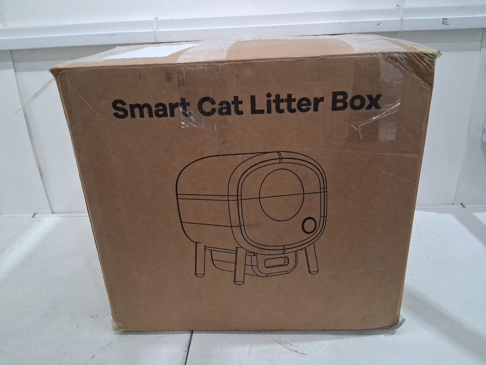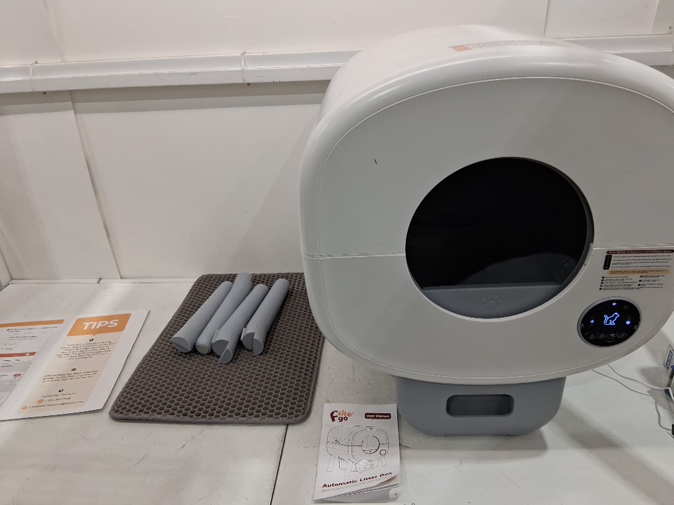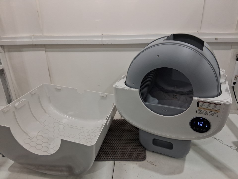 Smart self-cleaning app enabled cat litter box with pullout bag tray/catcher, ambient internal light, automatic/manual modes - 100L - white