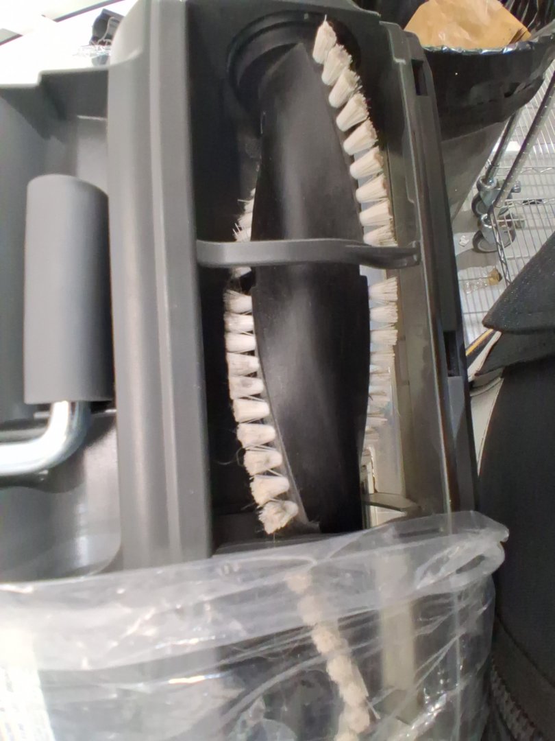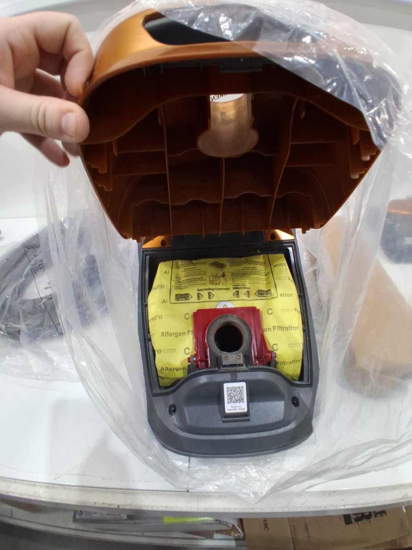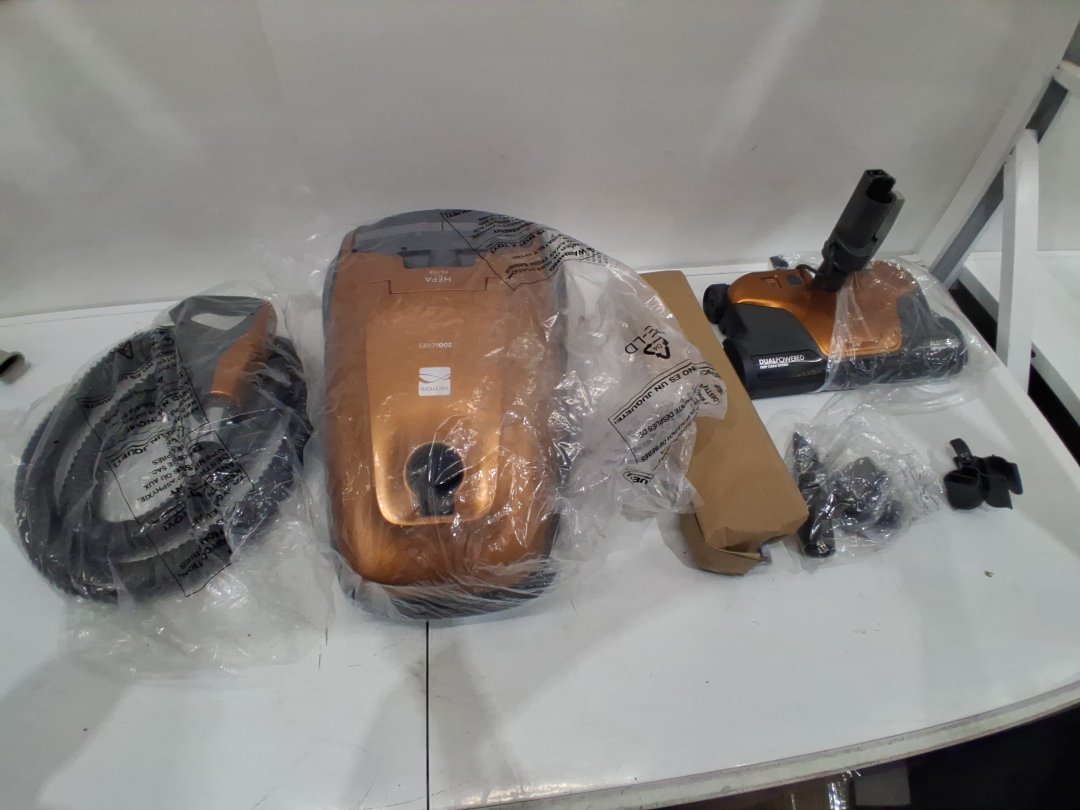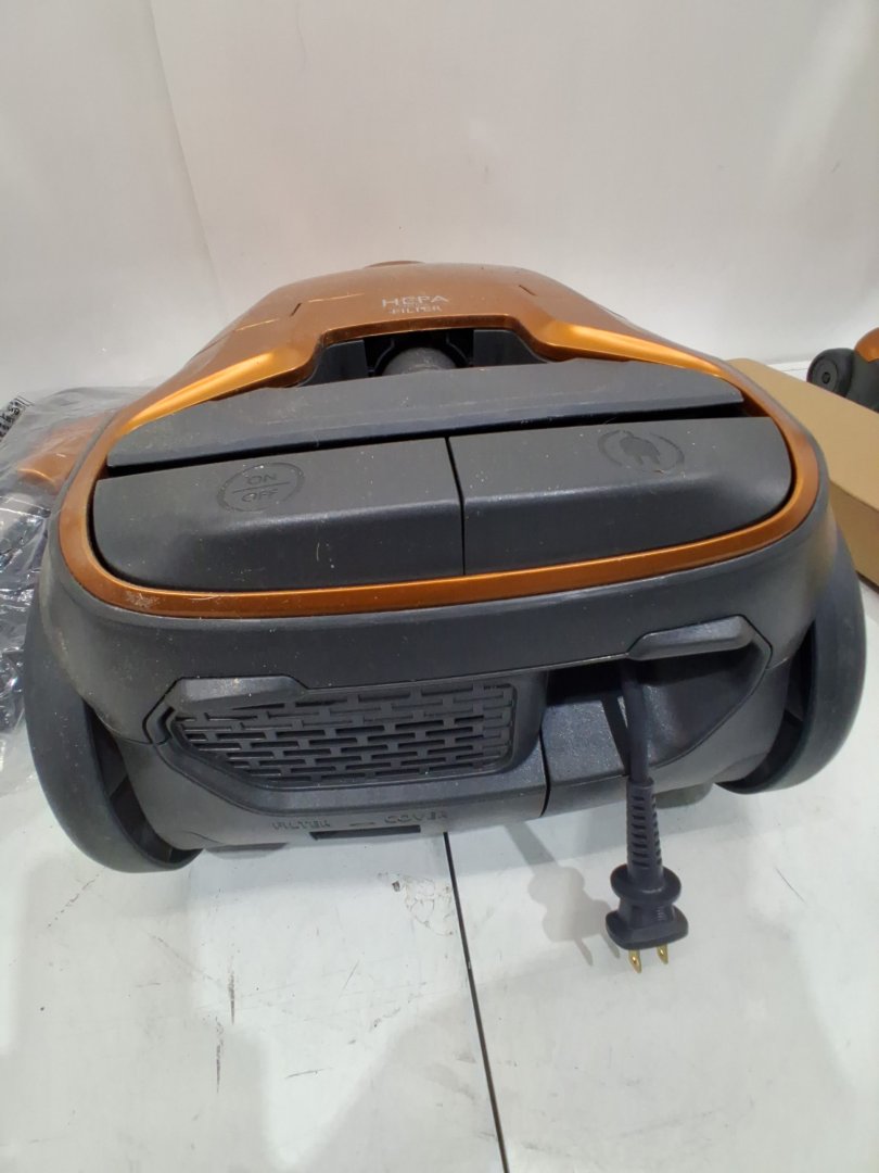 Item shows previous signs of use such as dirt/dust on surface of item, in brush of vacuum head, as well as inside canister bag. Item tested for power.