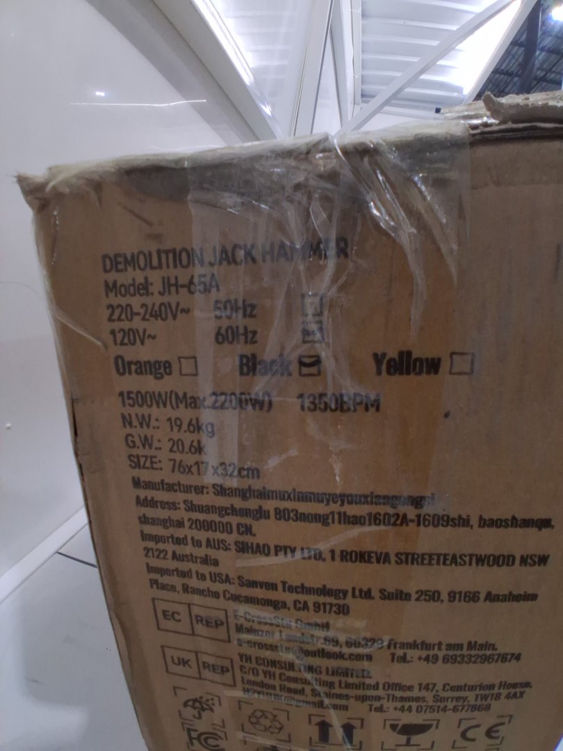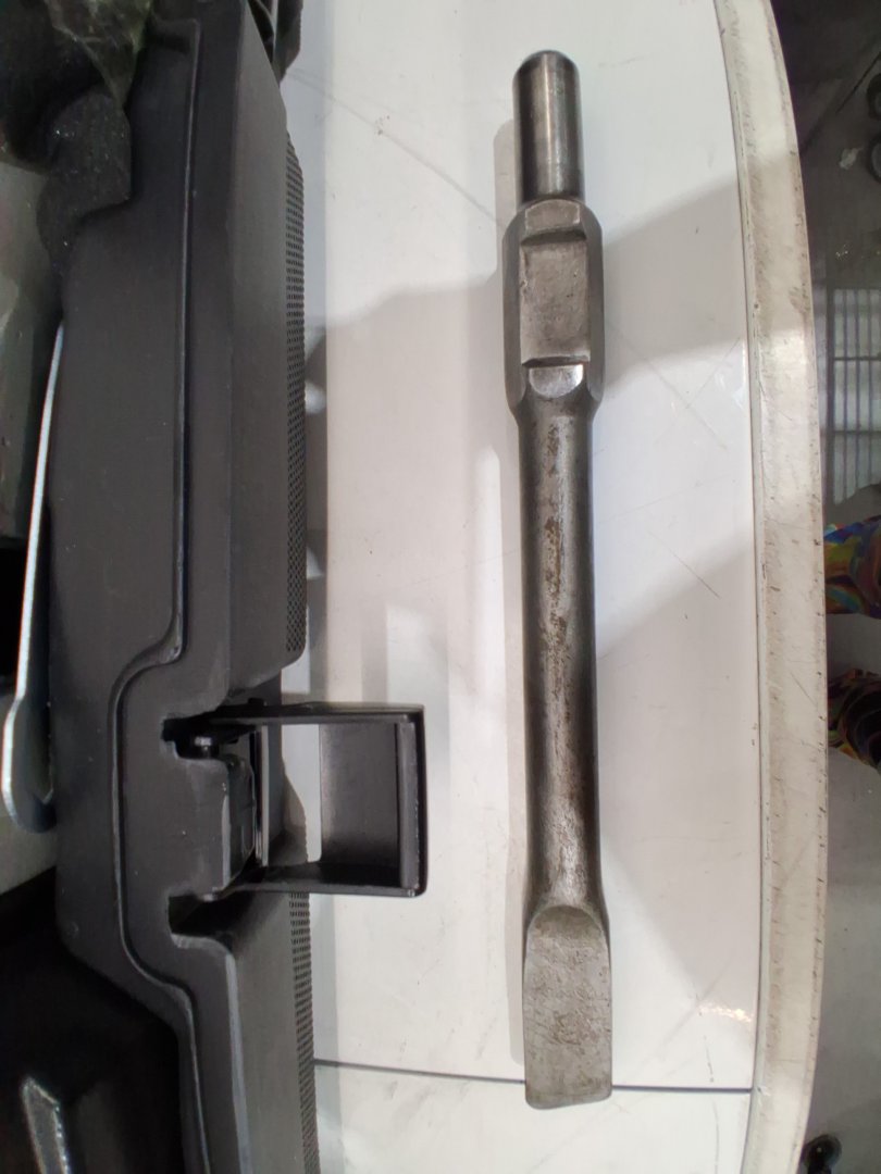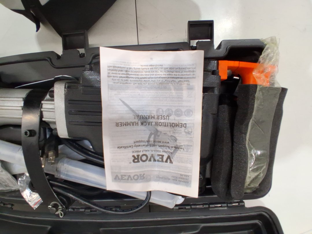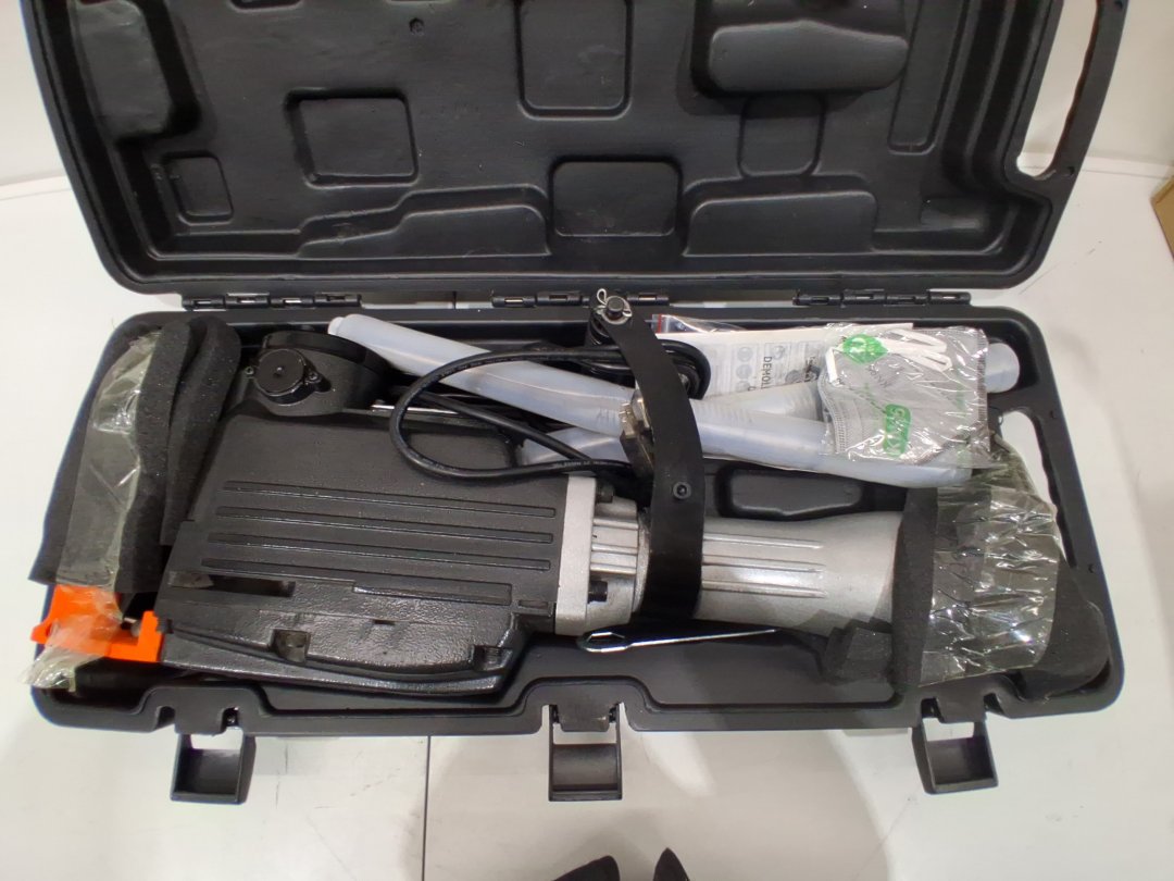 Item shows previous signs of use such as dirt/dust on surface of unit such as the plug, and signs of distress on one of the hammers metal bits. The other doesn't appear to be used. Item casing has a damaged hinge and mild scuffs/scratches.