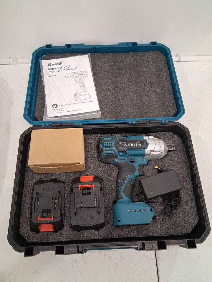 seesii 1/2" Cordless Impact Wrench WITH 2 BATTERIES & CHARGER - 21V 2400RPM 1000NM - TEAL/BLACK (MODEL: WH760)