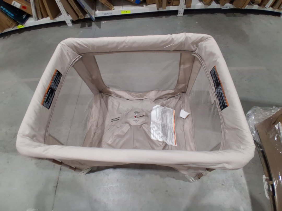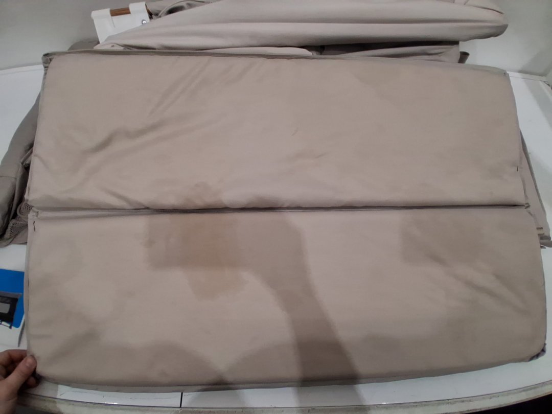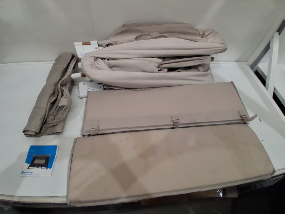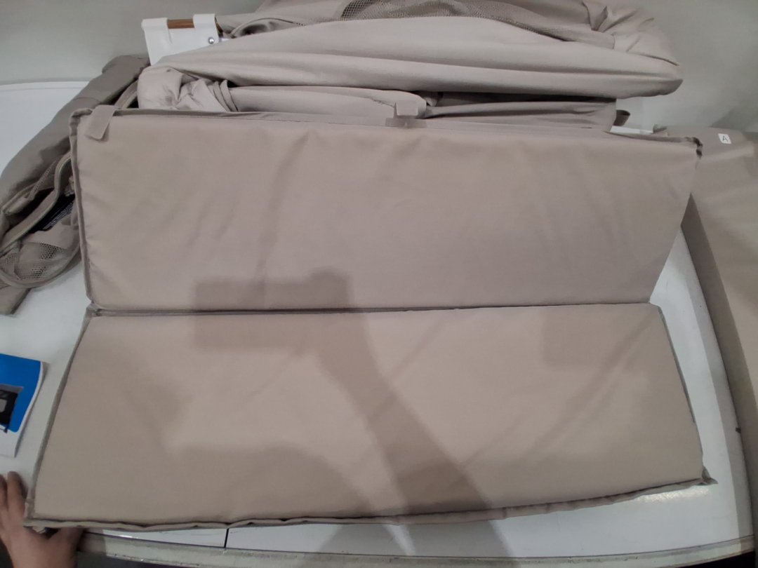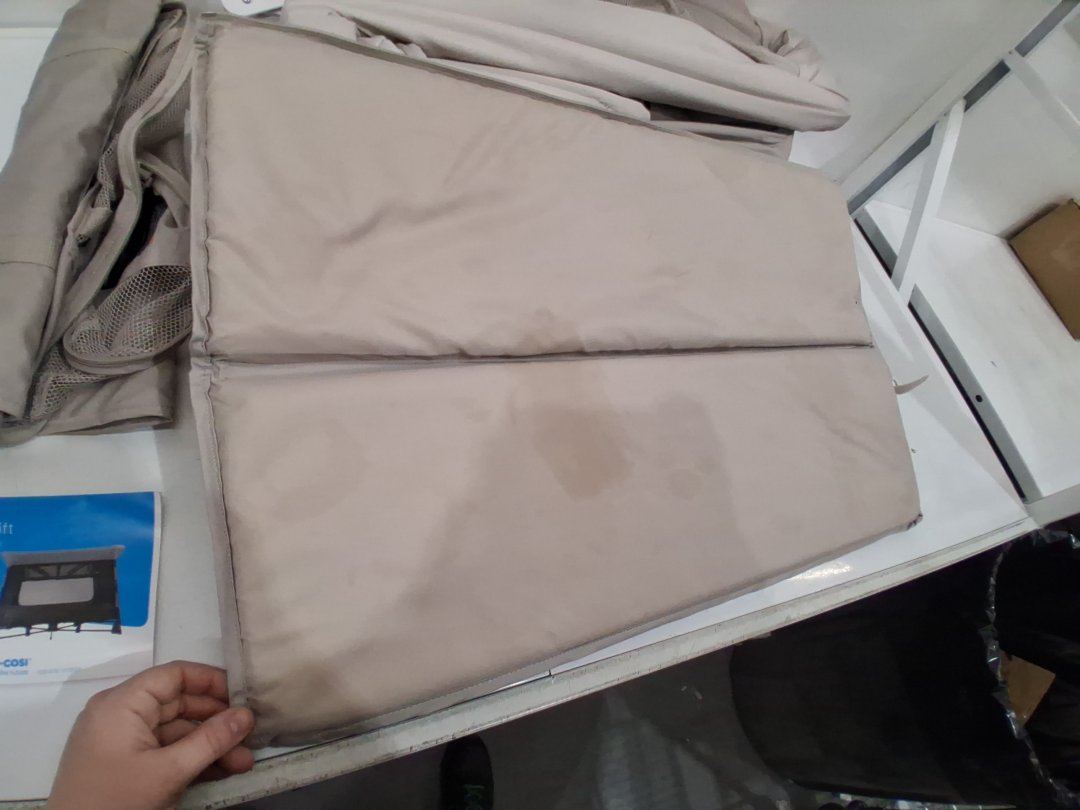 Item shows signs of previous use such as mild staining on one of the foldable pads for inside the unit and a few spots on the fabric on outside of unit.