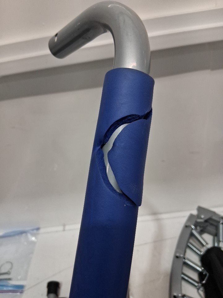 please note the product was discovered to be covered in scratches and scuff marks. we also found some tearing in the foam, please see photos for more details