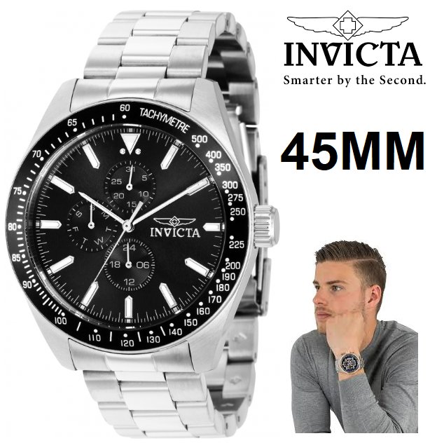 mens invicta aviator watch - 45mm - quartz stainless steel (model: 38966)