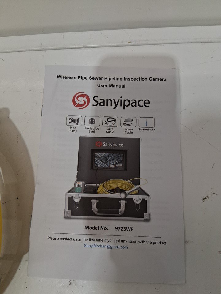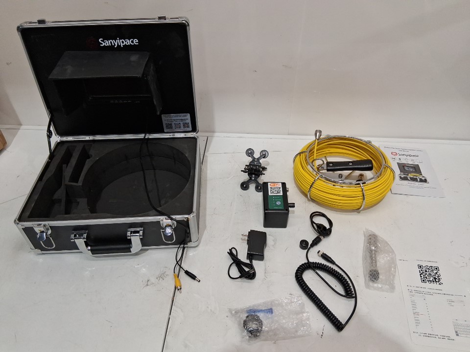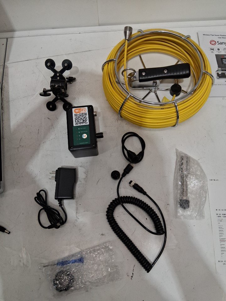 please note the product was tested for basic power and function. the product was also discovered to have some dirt and scuff marks on the camera and wire, we are unable to confirm if this is sewage but it can be cleaned, please see photos for more details