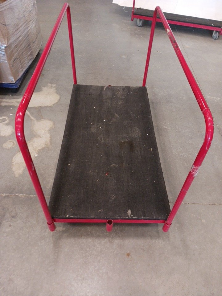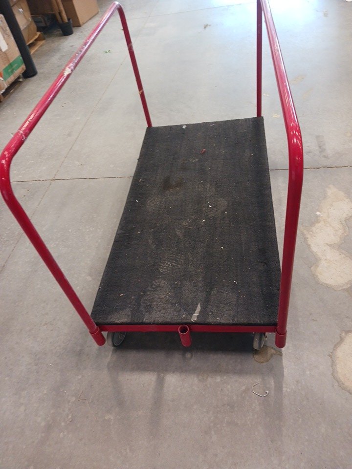 Please be aware that this item has been used in our operations and has wear/scratches and marks present through out. the photo's below only show what the item is and not the exact same item you will be getting but only to show what the general condition it will be in to an extent. This item does come with the 3rd bar. This item is quite large and will require at least a pick up truck for pick up. the cart itself is light but a little awkward and should have an additional person with you for pick up.