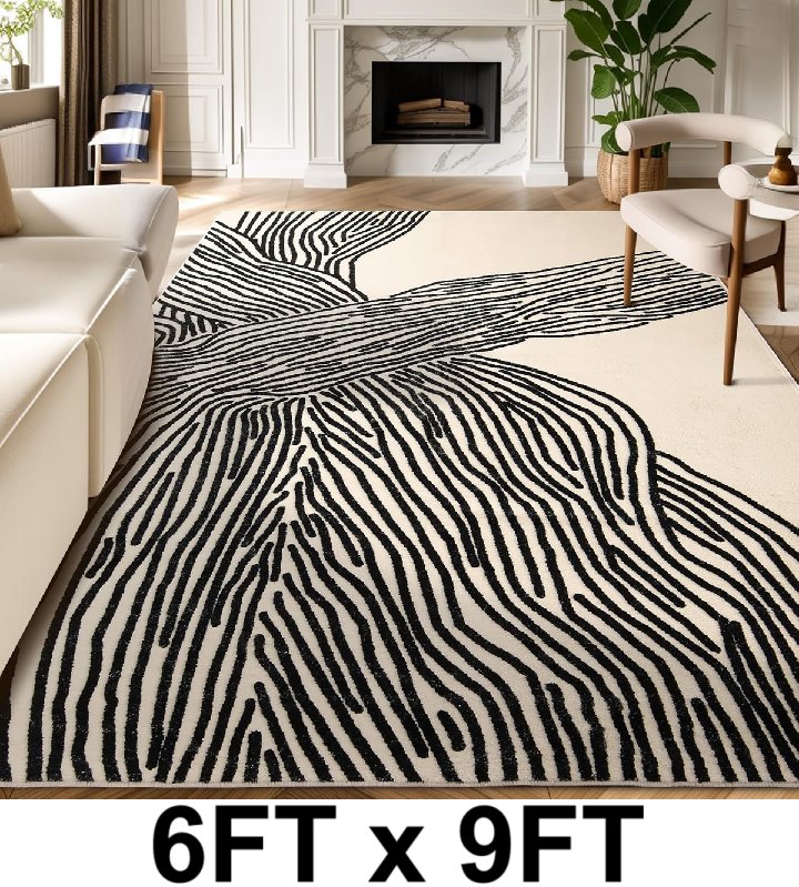 yIHOUSE WASHABLE ABSTRACT AREA RUG - 6ft x 9ft - BLACK/WHITE STRIPE
