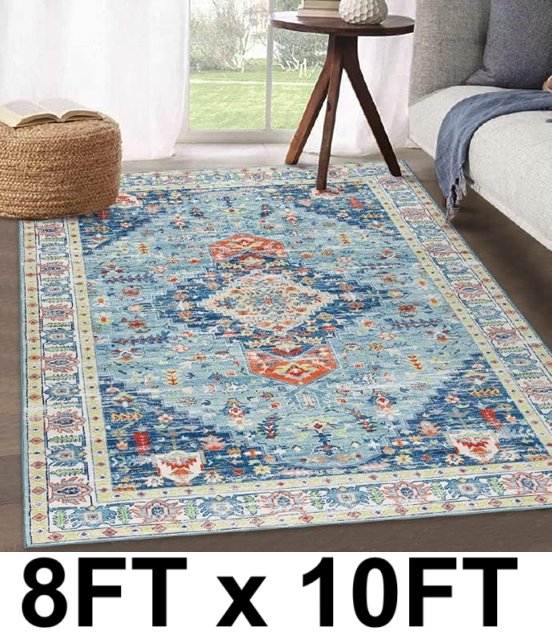 Fashionwu Oriental Rug for Living Room with non-slip floor mat - 8ft x 10ft - blue