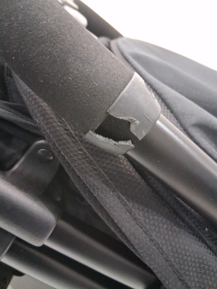 product has some dirt on it from previous use as well as a piece of the plastic on the handle has broken off (See photos)