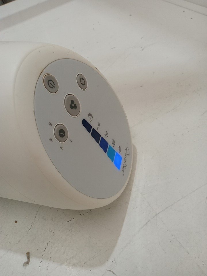 the fan is a bit dirty, but it turns on and works fine. please see photos. please see photos
