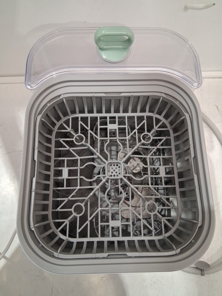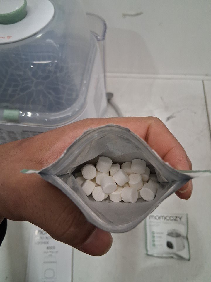 please note that detergent package is opened from previous use, we couldn't find any marks on the machine from last use, so it looks like new.