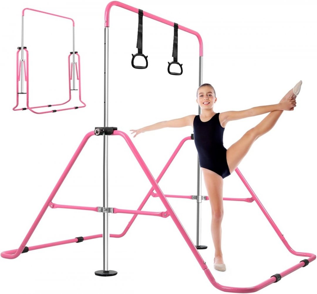 BEEYEO Expandable Adjustable Height Gymnastic Horizontal Bars for Home/Floor/Practice/Gymnastics - 42.5" X 58.5" X 35"-50.5" - PINK