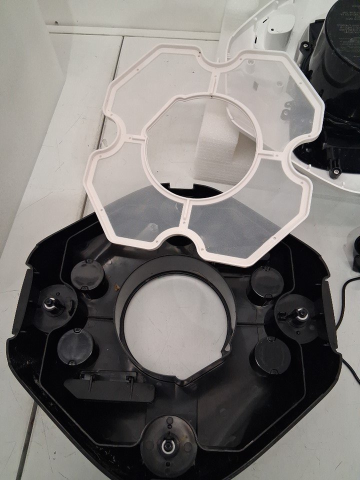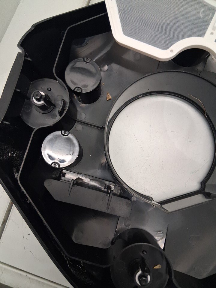 Vacuum has dirt water spots on top and dust. Inside filter has leaf debris. HAs been tested
