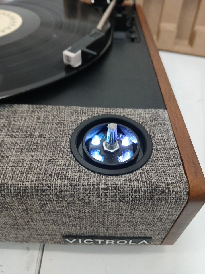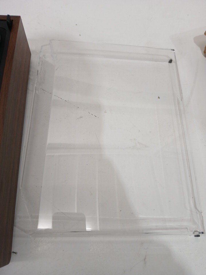 Please note the dust cover is damaged, but does not affect function. See photos attached. The stylus shows signs of being used previously(too difficult to photo).