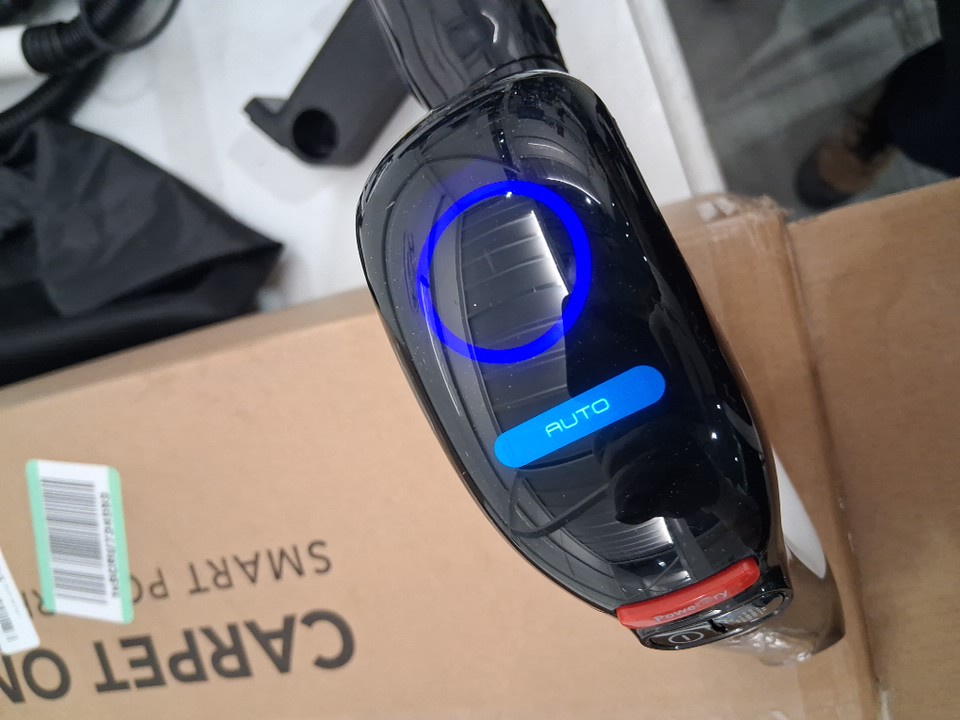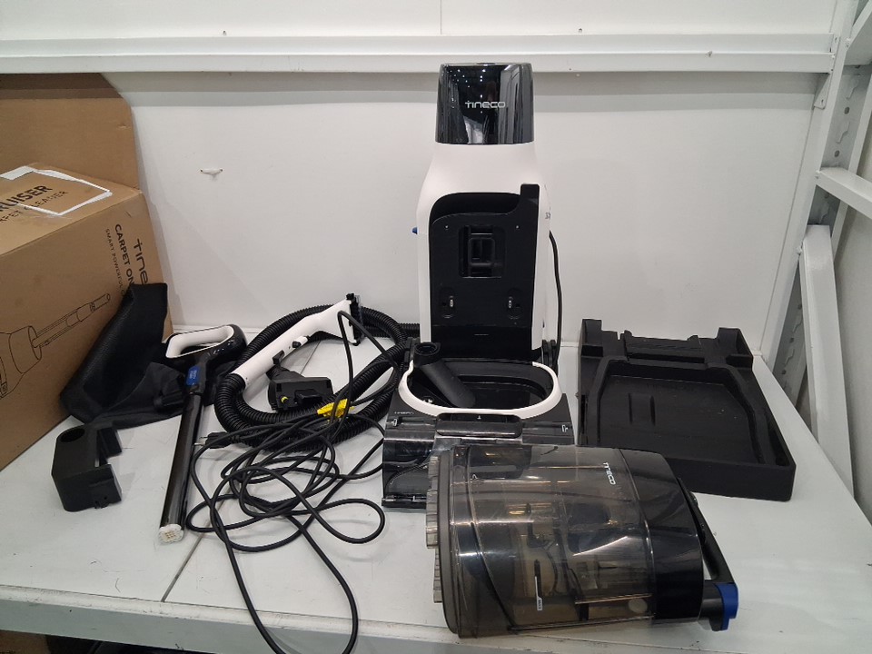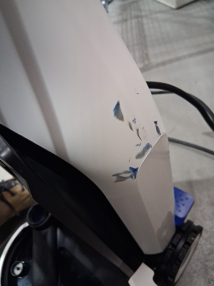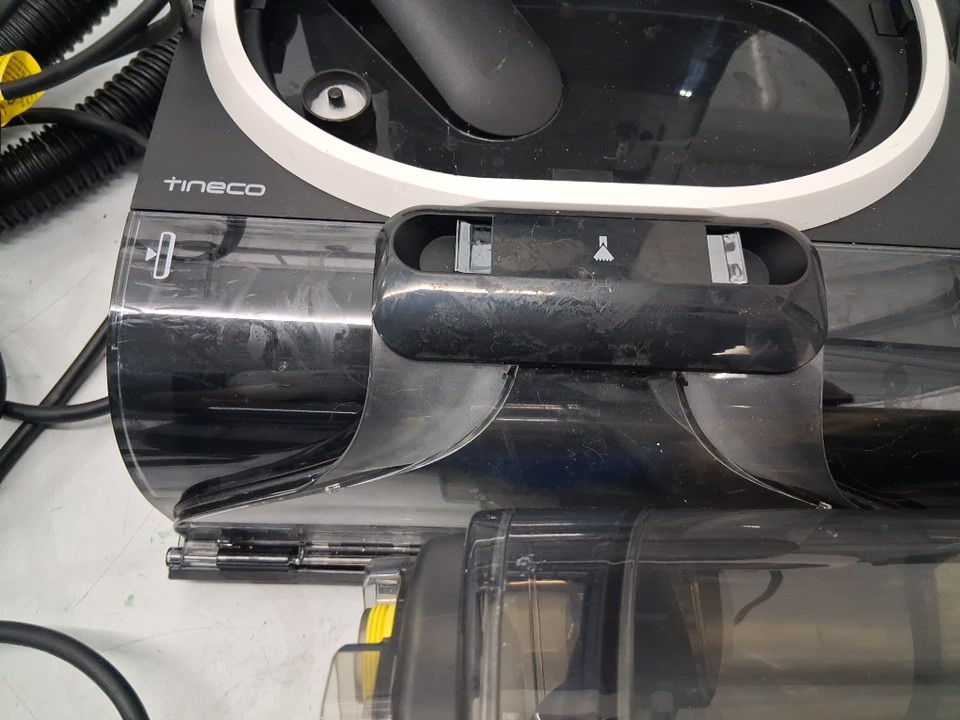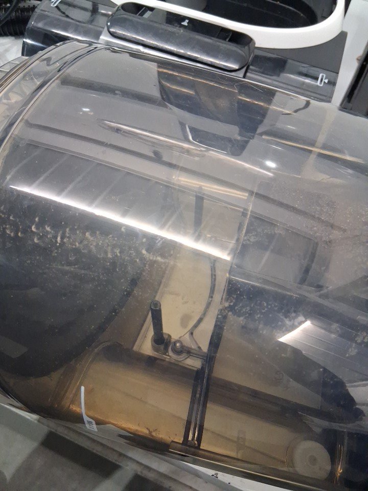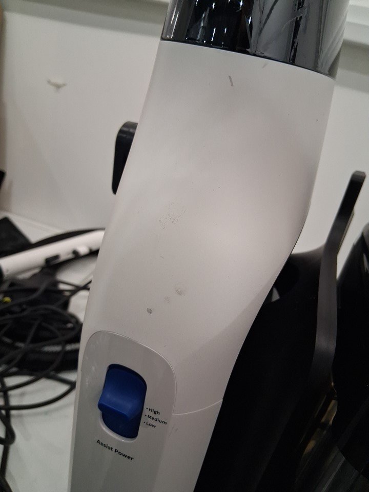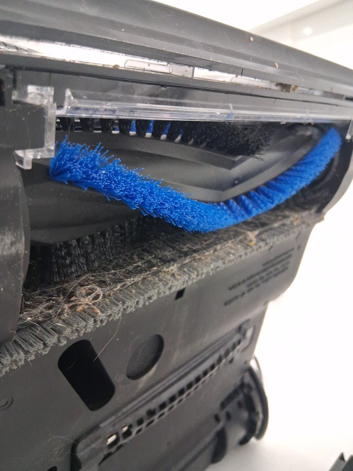 Vacuum has visible dirt and hair in bristles, water spots and has scuff marks on side of vacuum. Has been tested for power