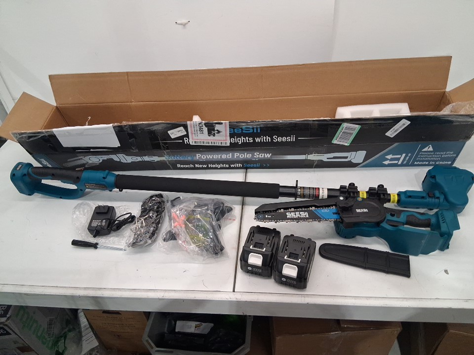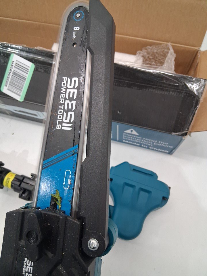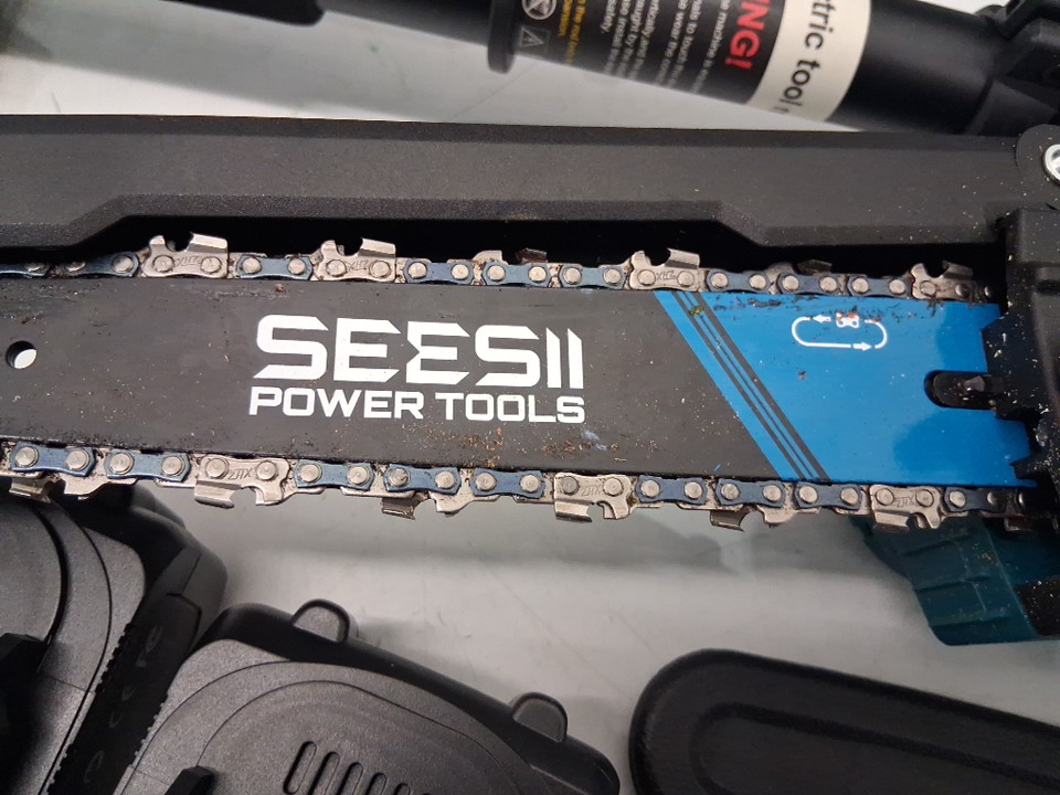 saw has leaf debris and light dirt on chain. Has been tested for power (no light indicator)