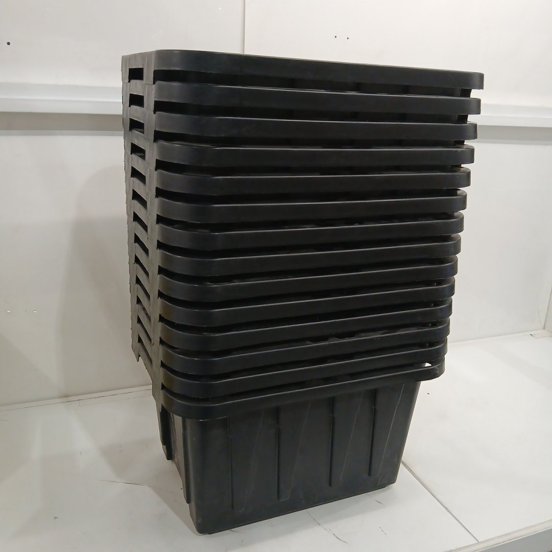 As stated, these totes have no lids and are dusty from warehouse use but are in good condition.