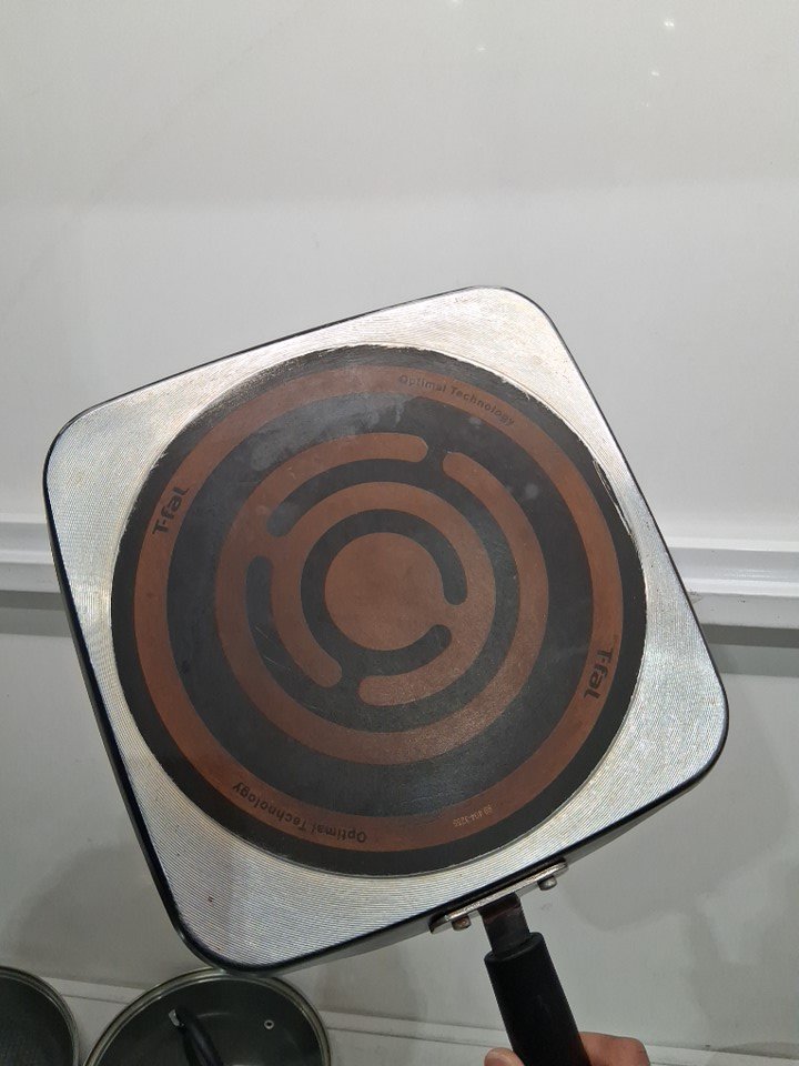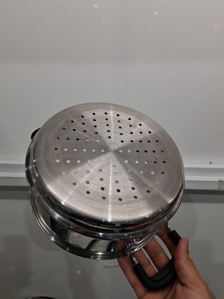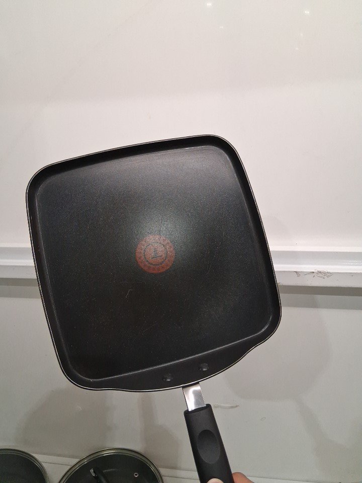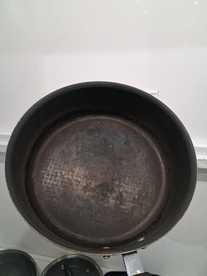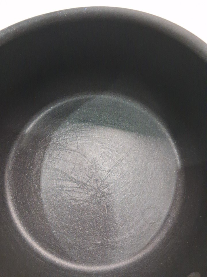 it is lightly used as it has some oil residue on of the pans on the bottom, it has some scratches inside few of the pans and one of the lids has a slight minor dent on the corner, still it fits on the pan properly. (see photos for more details).