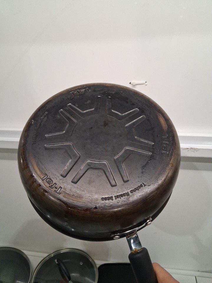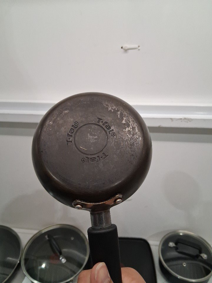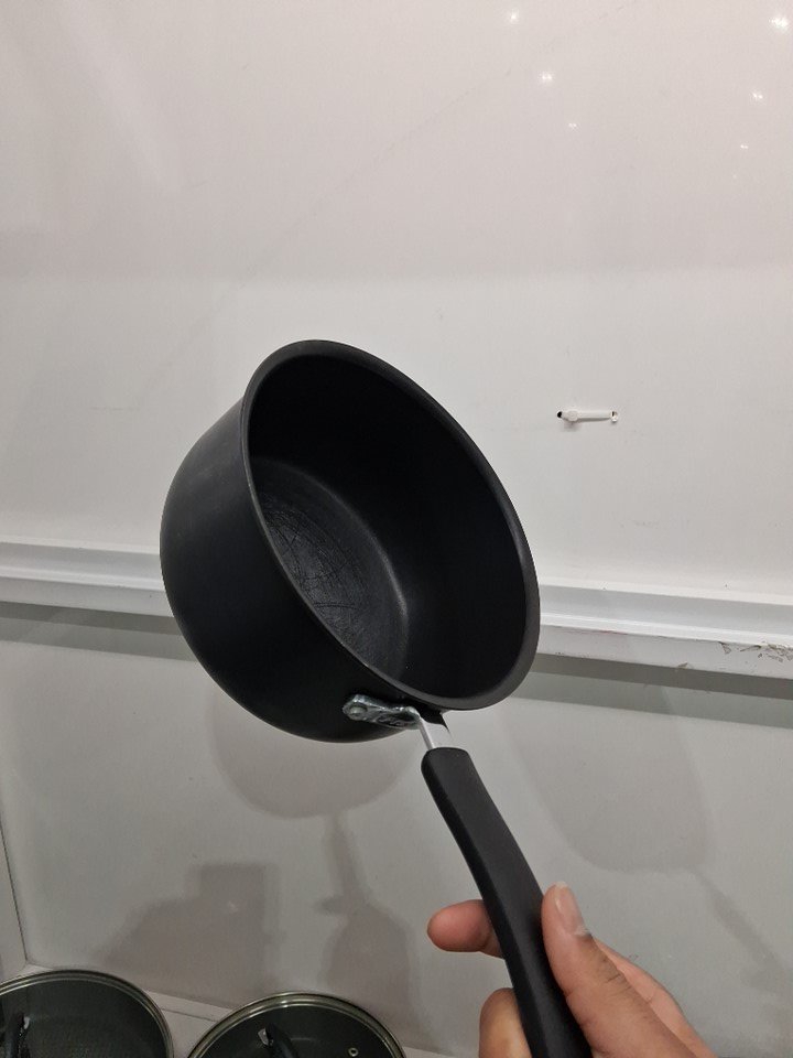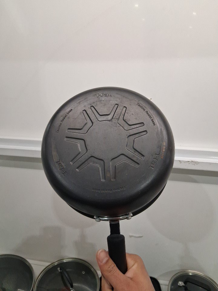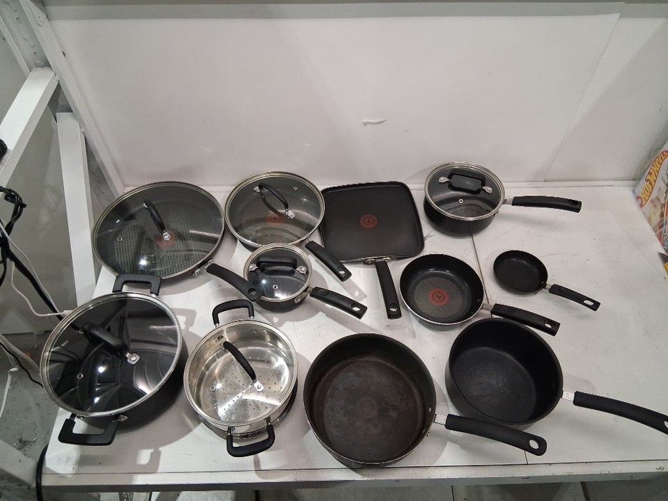it is lightly used as it has some oil residue on of the pans on the bottom, it has some scratches inside few of the pans and one of the lids has a slight minor dent on the corner, still it fits on the pan properly. (see photos for more details).