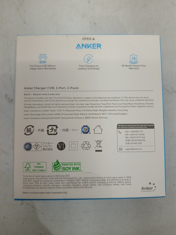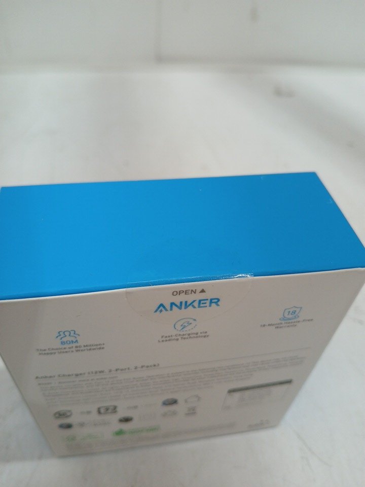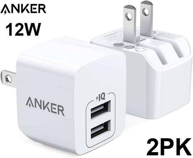 2pk anker dual port usb-a charger block with foldable plug - 12w - white (model: b2620)