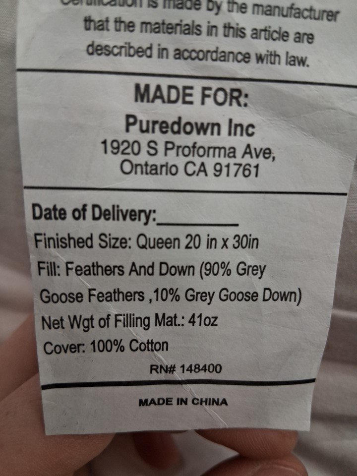 2PK PUREDOWN PREMIUM GOOSE FEATHER & DOWN PILLOW with 100% cotton cover - QUEEN (20" x 30") - WHITE