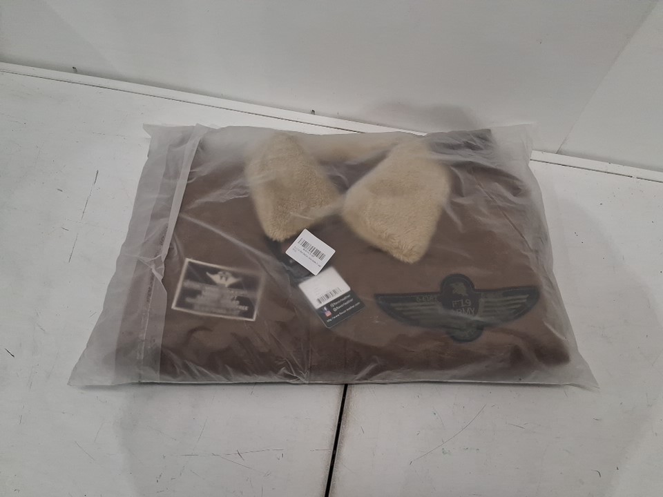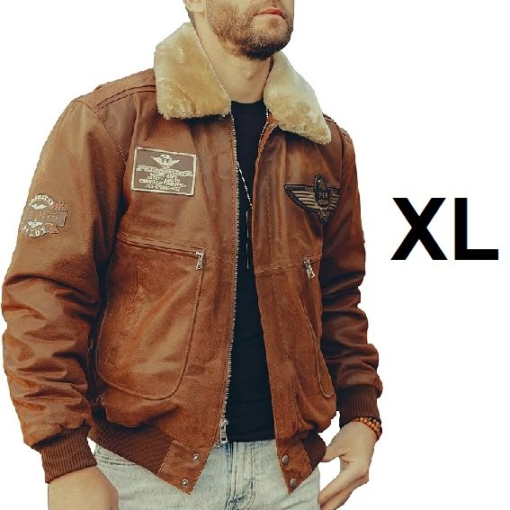 men's flavor Real Leather Aviator Bomber Jacket with Removable Fur Collar - extra large - brown