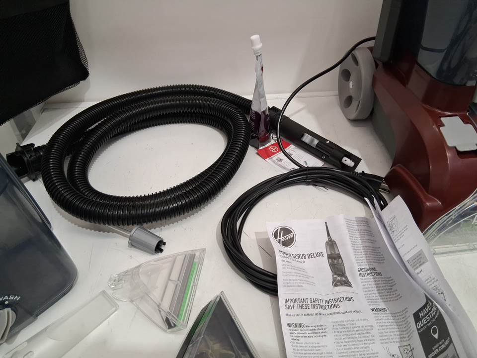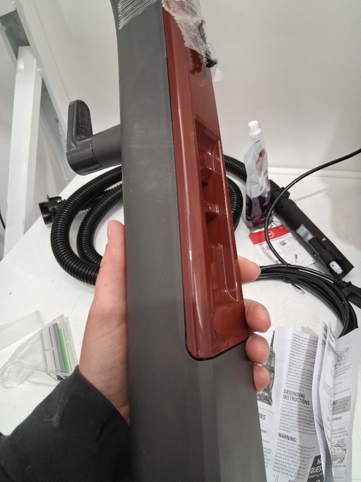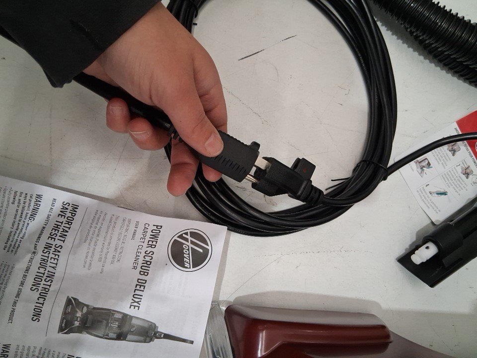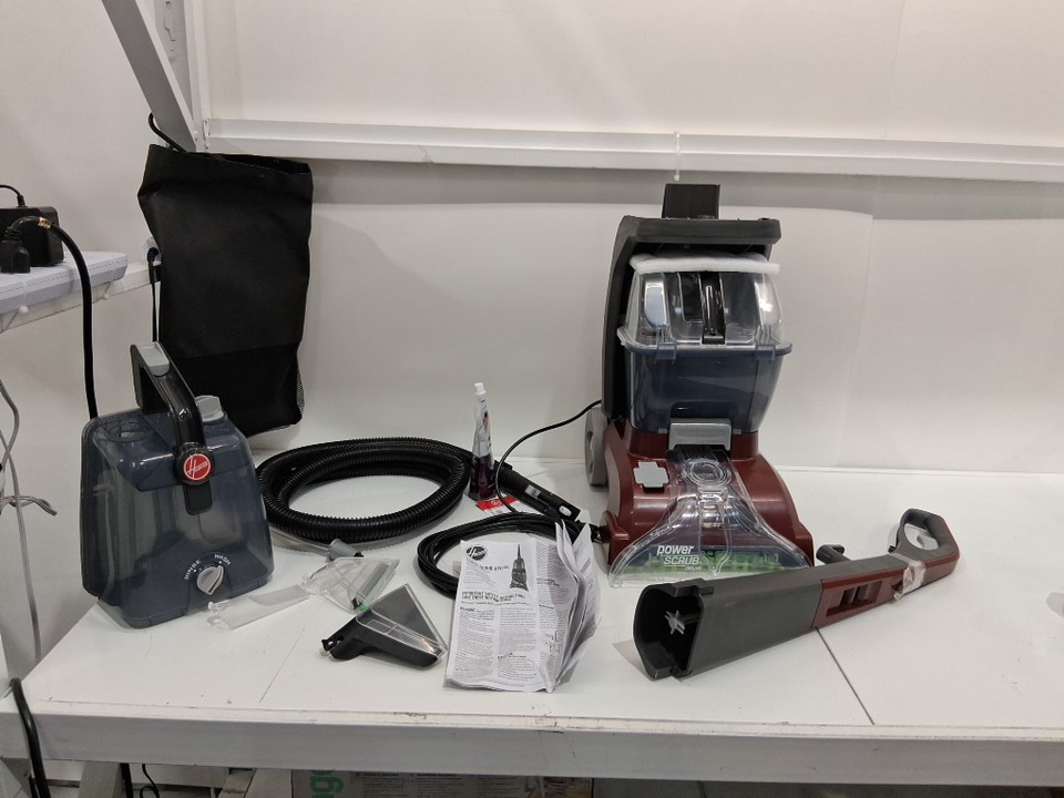 this machine shows no signs of previous use. there are light scuff marks on the handle. tested for power, but not function.