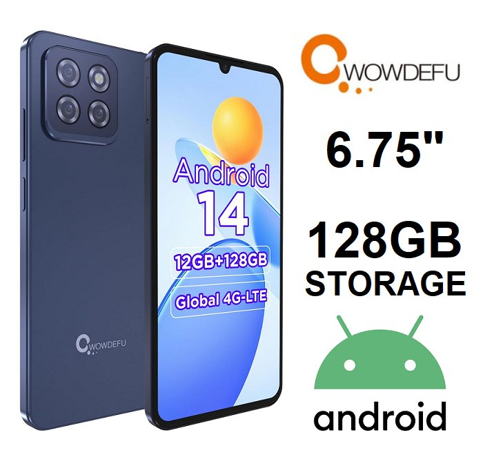 CWOWDEFU 4G Dual SIM Android 14 Octa Core 6.75" FHD SMARTPHONE -12GB RAM, 128GB STORAGE - Blue (MODEL: S28)
