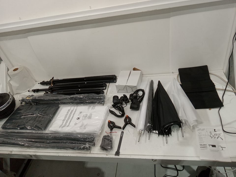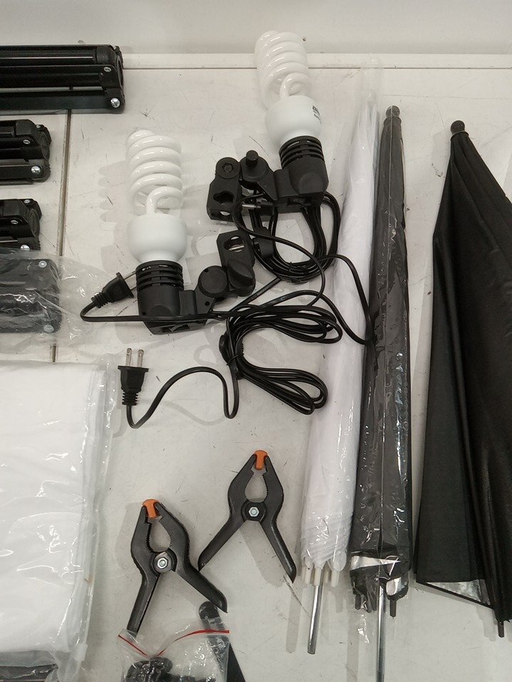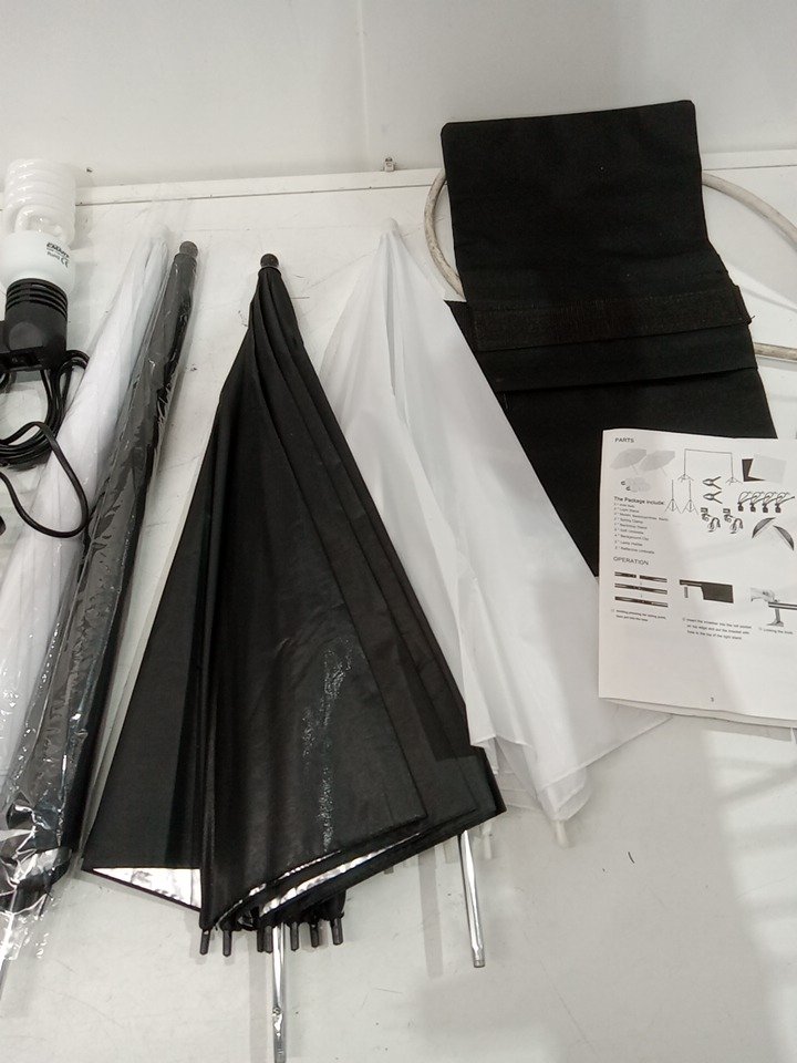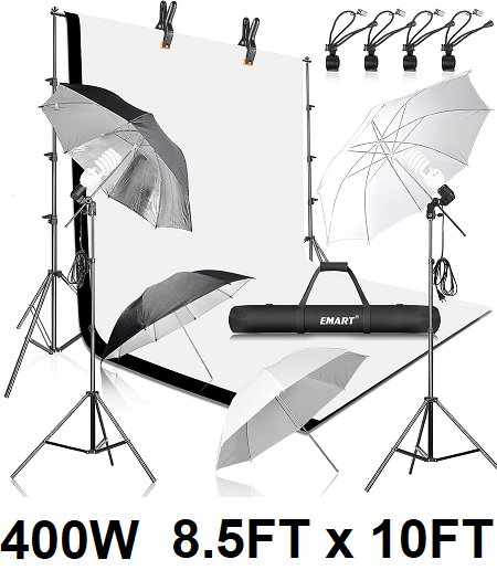 EMART Daylight Umbrella Continuous Lighting Kit for photo production - 400w, 8.5ft x 10ft - b;acl/white - (MODEL:em-bsbw-2ulk)