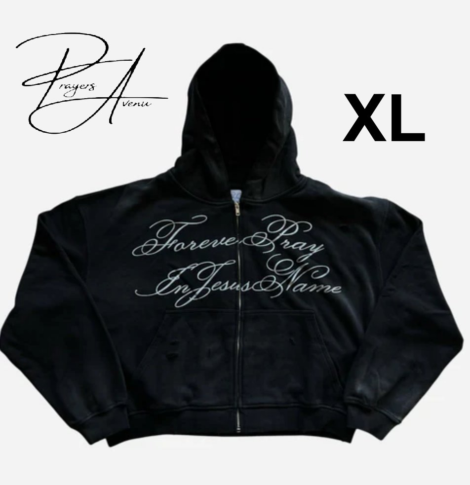 ADULT UNISEX prayers avenu JESUS TIME FULL ZIP HOODIE - EXTRA LARGE - BLACK