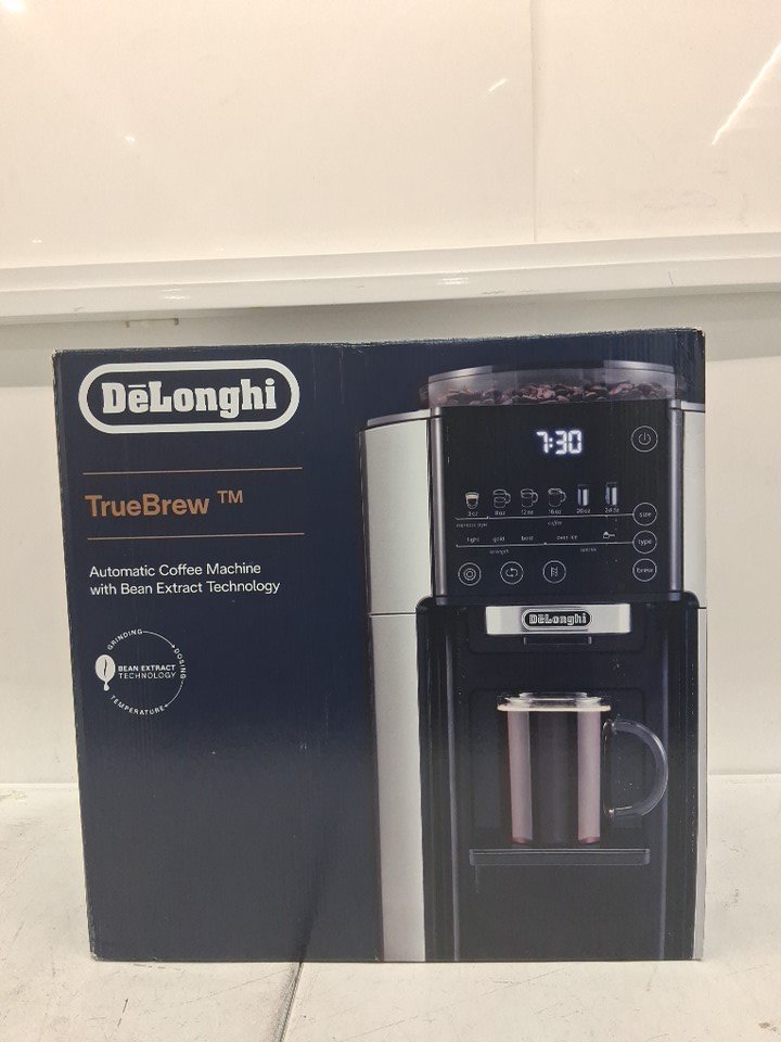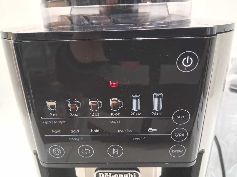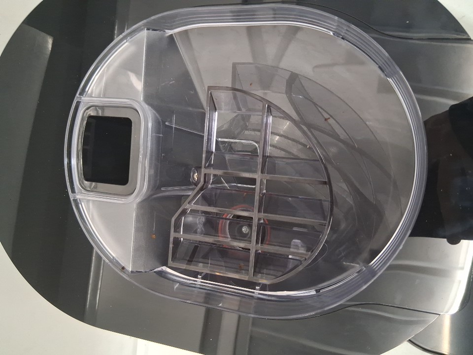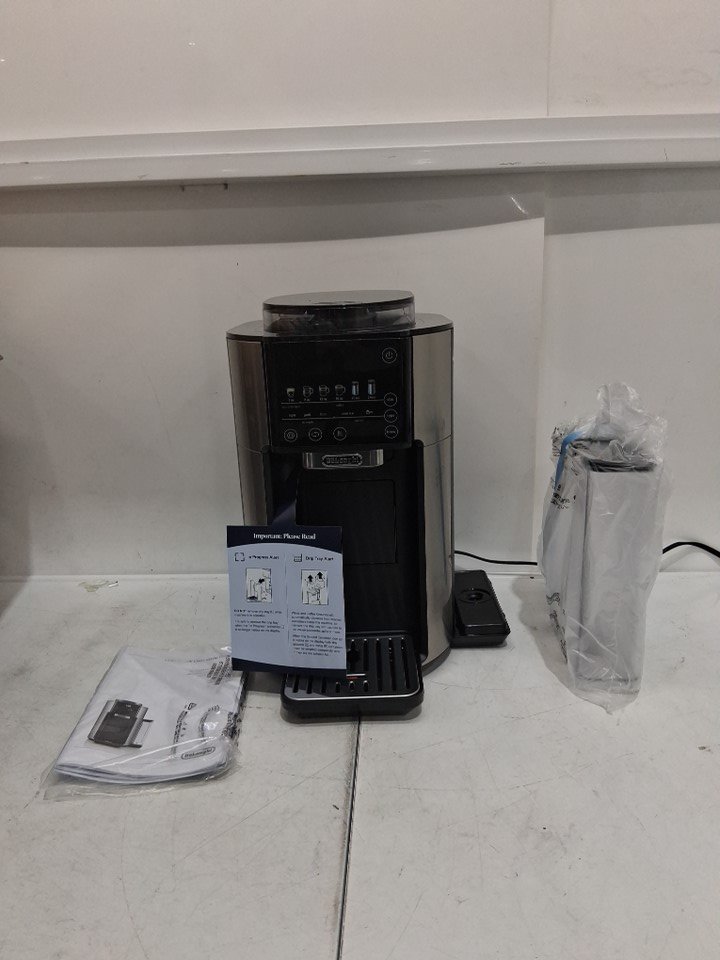 some coffee bean residue from previous use, missing spoon and spout attachment. Tested for power