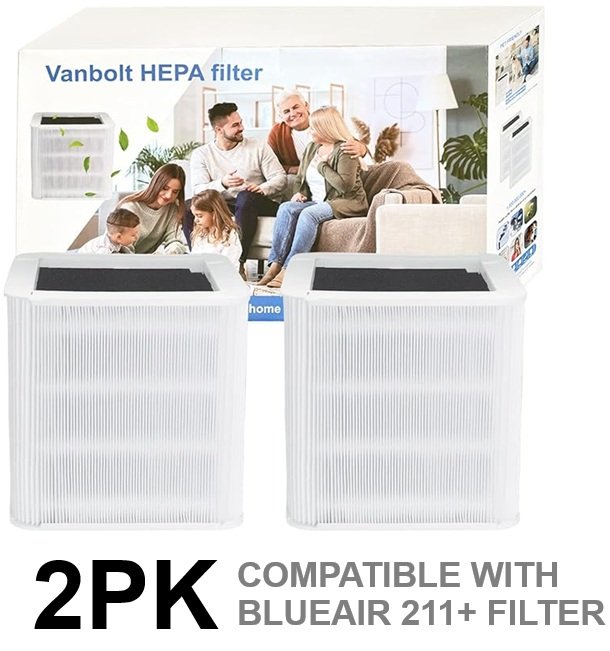 2pk Vanbolt true HEPA replacement filter - Fit for Blueair Pure 211+ Air Purifier - White (model:‎211+)