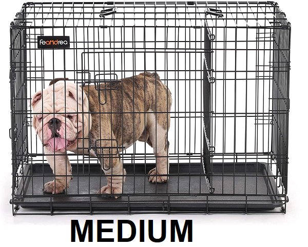 FEANDREA DOG CAGE, PET CRATE WITH 2 DOORS FOR EASY ENTRY, MEDIUM SIZE - BLACK - (MODEL:PPD36BK)