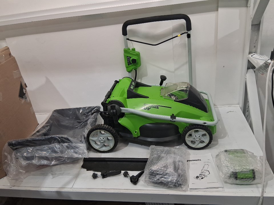 Tested for power and function. Grass residue indicates previous use (See photos).