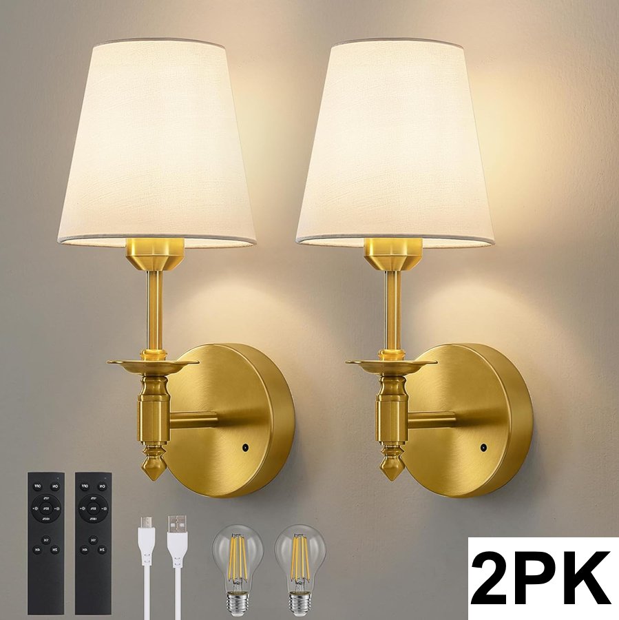2PK WOSHITU BATTERY OPERATED WALL SCONCE - 7" x 14" - BRASS