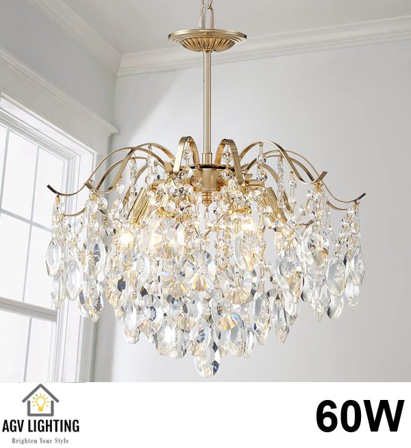 AGV LIGHTING K9 ADJUSTABLE Crystal Chandelier - 59" - 60W - GOLD Finish & Clear Crystal (model: ‎AGV-CH012G)