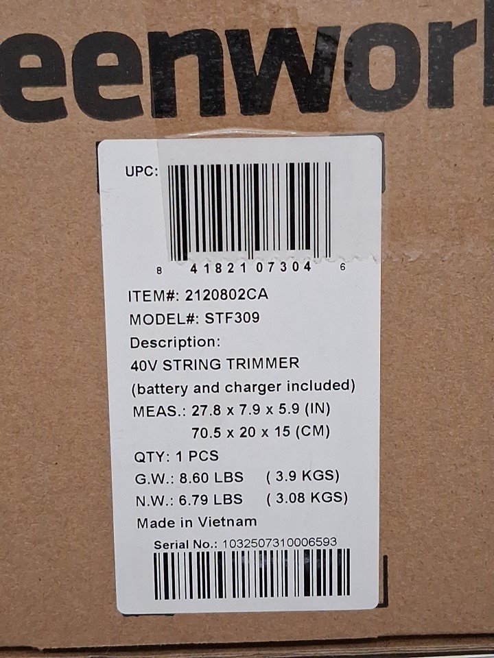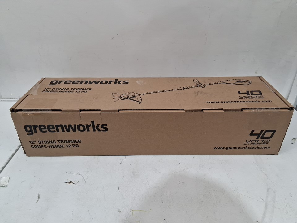 Greenworks 40v Cordless String Trimmer with battery & charger- 12"- green/black (Model: stf309)