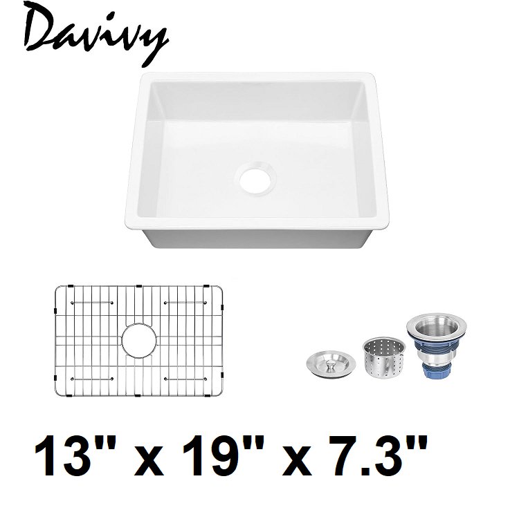 davivy fireclay undermount sink - 13" x 19" x 7.3" - white (model: ds-1412-wi)